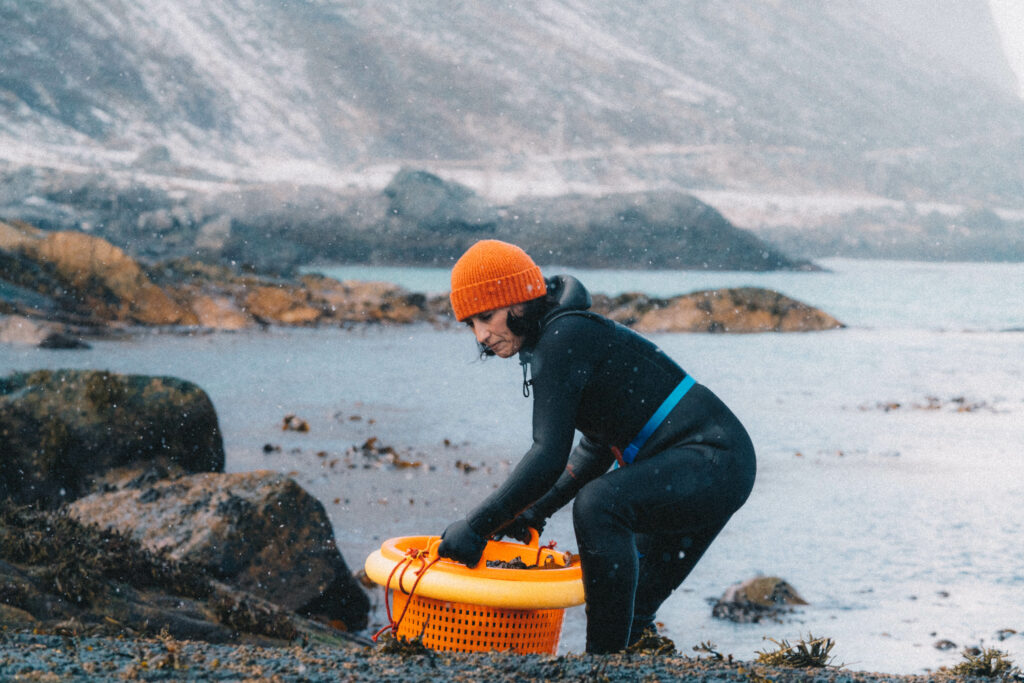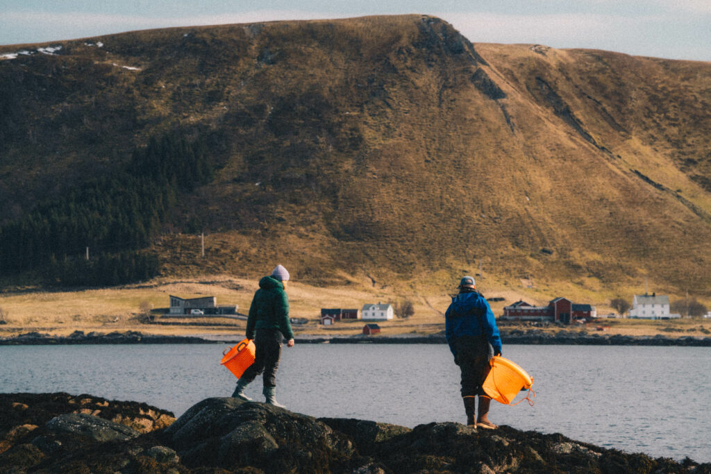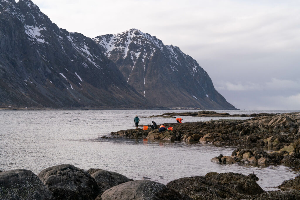 Together, we explored the raw beauty of Lofoten: salt-spray mornings, kelp-slick rocks, winter light that feels almost cinematic, and the quiet rhythm of tides that shape everything we do. Their team did more than visit. They suited up, waded in, and experienced the rugged reality that inspires our work every day.